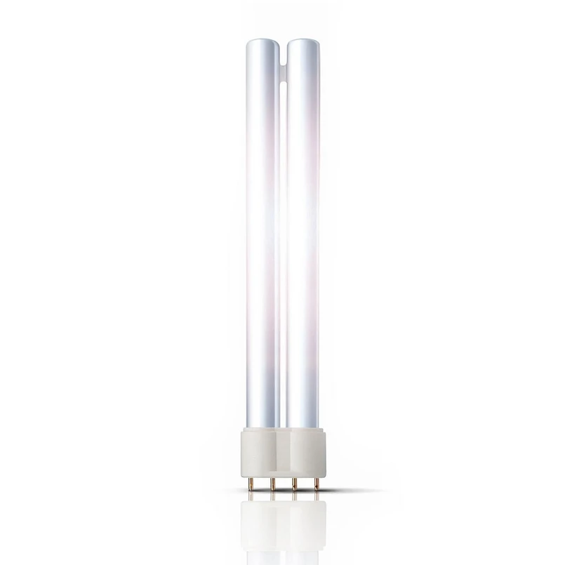 2G11 18W - 80W kompakt lågenergilampa Master PL-L 4 Pin - varumärke Philips Fördelar - Särskilt lång livslängd - Mer ljus vid höga temperaturer i armaturen tack vare Philips bridge-teknik Funktioner - Dimbar upp till 10% med lämplig elektronisk ballast - Bra färgåtergivning Användning - Mycket lämplig för kompakta lågenergilampor, t.ex. infällda eller utanpåliggande downlights i privata och professionella tillämpningar. Anmärkningar - Lampans fotometriska och elektriska egenskaper påverkas av driftförhållandena, t.ex. omgivningstemperaturen och driftpositionen, samt av den ballast som används - Frekventa byten med otillräckligt förvärmda elektroder förkortar lampans livslängd
