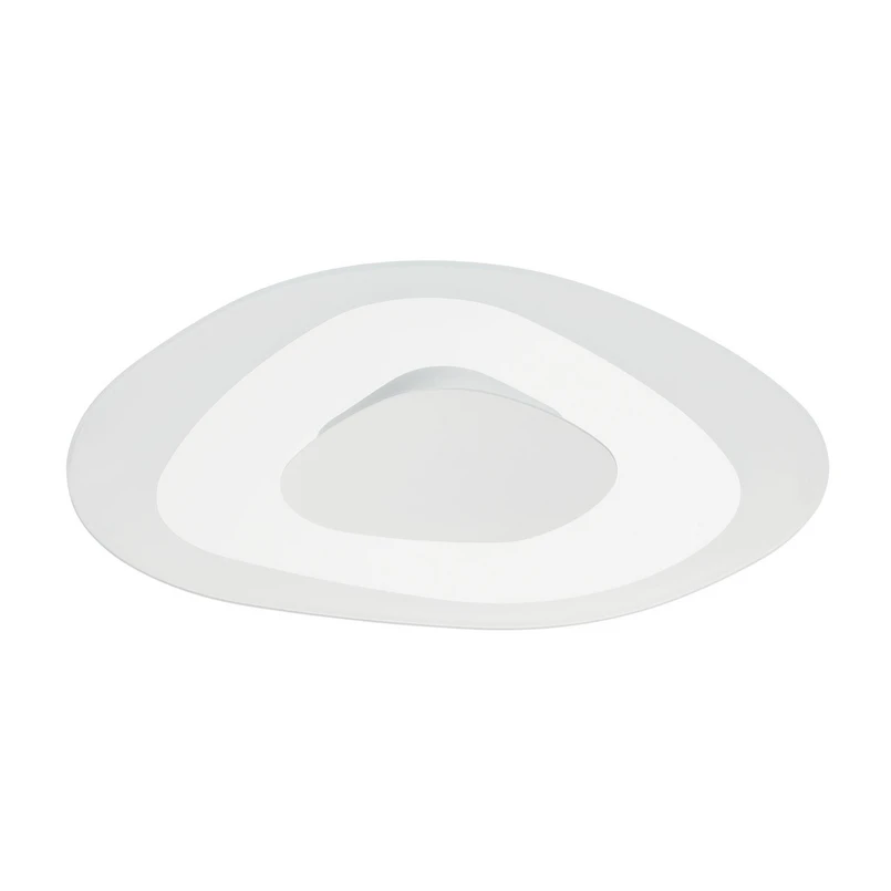 Ljus LED-taklampa Antigua av metall och glas LED-taklampan Antigua imponerar med sitt vänliga, organiska utseende och är lämplig som blickfång för privata och offentliga interiörer. Antigua kombinerar vita och transparenta sektioner med en asymmetrisk, inte helt rund design. LED-lamporna är placerade på ovansidan av det centrala fästet av vitlackerad metall. Deras varmvita ljus avges mot taket och reflekteras nedåt genom glasskärmen och lyser upp den matta yttre sektionen på ett imponerande sätt.