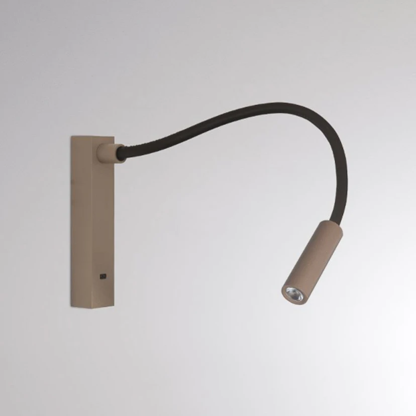 Arok LED-vägglampa med flexibel läsarm LED-vägglampan Arok har en flexibel väggarm. På denna är ett cylindriskt armaturhuvud fäst. Armaturen kan inte bara tändas och släckas på det fyrkantiga väggfästet, utan även dimmas med en sensordimmer. Väggfästet och armaturhuvudet är harmoniskt utformade i samma färg, vilket ger ett smakfullt intryck i vardagsrummet och sovrummet. Arok passar därför utmärkt som läslampa, eftersom ljuskäglan kan justeras individuellt, oavsett om den är monterad bredvid en mysig fåtölj eller bredvid sängen.