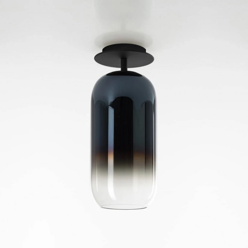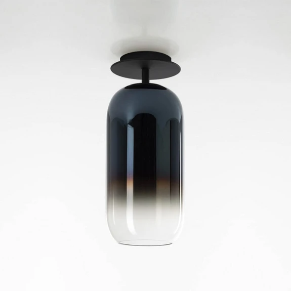 Toppdesign taklampa Gople Mini med skärm av handblåst glas Tack vare sin estetiska, tidlöst vackra design passar denna taklampa många inredningsstilar och är lämplig för effektiv allmänbelysning i vardagsrum och sovrum samt korridorer och hallar tack vare sin allroundljusemission. Gople Mini har skapats av Bjarke Ingels Group och ingår i den välkända armaturserien Gople, som består av tak-, pendel-, golv- och bordslampor. Det speciella med denna ljuskälla är den handgjorda glasskärmen, där kristallglas och färgat glas har blåsts samman för att skapa en mycket attraktiv färggradient, som också skapar en fascinerande ljusatmosfär. Bjarke Ingels Group har kontor i Köpenhamn och New York. Samarbetet mellan designers och arkitekter gäller både storskaliga projekt som West 57th på Manhattan, ett byggnadskomplex med 750 lägenheter, och produktdesign som armaturerna Gople. Tillverkningsföretaget Artemide utvecklar och producerar högkvalitativa designprodukter enligt filosofin "The Human Light", som tar hänsyn till människans behov av harmoni och ljus.