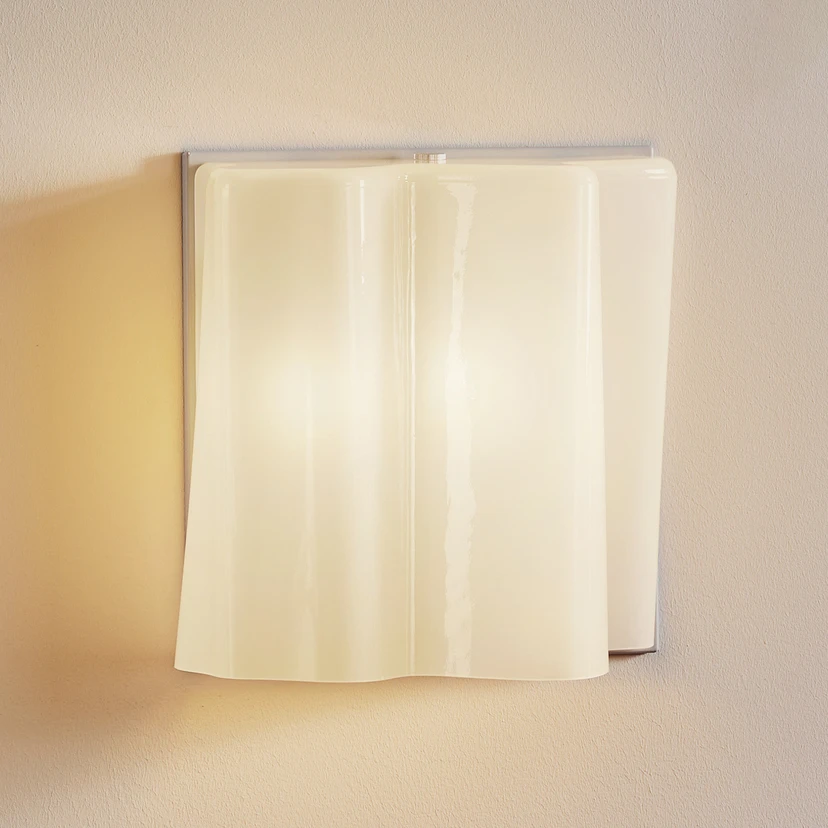 Logico designvägglampa av glas Logico-vägglampan med sitt veckade utseende är en absolut höjdpunkt, både visuellt och funktionellt: dess skärm är handblåst av glas. Veckningarna skapar inte bara en iögonfallande look, utan har också en positiv effekt på ljusmönstret. Det gör att ljuset framstår som ännu mer strålande. Ljuset sprids inte bara direkt, utan även indirekt, vilket skapar en mysig atmosfär i rummet. Vägglampans ljusstyrka kan även regleras med en extern dimmer. Logico är utrustad med en E27-sockel som passar alla typer av glödlampor med motsvarande sockel. Vägglampan kan också användas med energieffektiva LED-lampor som kan monteras i efterhand. Designen utformades av Michele De Lucchi och Gerhard Reichert från Artemide och belönades med Reddot Award år 2002.