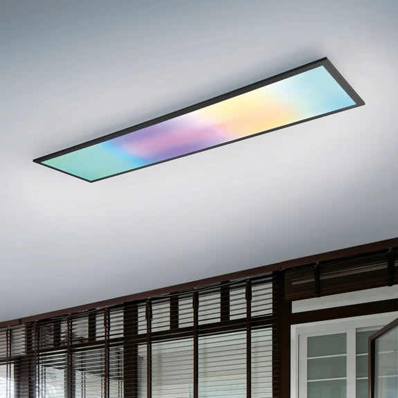 Beta LED-taklampa: färgvariation och stämningsbelysning för interiörer Upplev en ny dimension av rumsbelysning med Beta LED-taklampan. Den rektangulära, svarta armaturen smälter sömlöst in i moderna boendekoncept och erbjuder ett imponerande utbud av ljusfärger tack vare integrerade CCT- och RGBW-funktioner. Oavsett om det är varmvitt för en mysig middag eller dynamiska färger för en inspirerande atmosfär - Beta anpassar sig efter dina behov. Den integrerade LED-ljuskällan kombinerar energieffektivitet med lång livslängd och möjliggör målinriktad ljusdesign i vardagsrummet, matplatsen eller hallen. Med den medföljande dimmern kan ljusstyrkan på Beta taklampa justeras steglöst för att skapa rätt ljusmiljö för varje situation. Upptäck hur Beta LED-taklampa förvandlar ditt hem till en fascinerande ljusupplevelse.