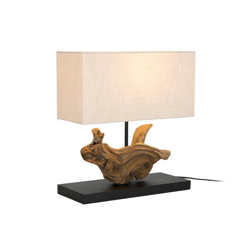 Bordslampa Lipari, träfärgad/beige, höjd 41 cm, linne