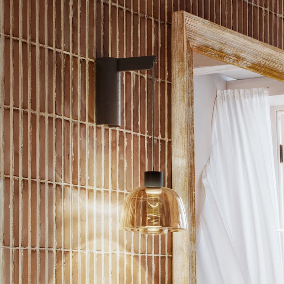 LED-vägglampan Drep A/01 från den spanska lampstillverkaren Bover imponerar med sin formsköna glasskärm med bärnstensfärgad toning, som har ett upphängningssystem med en svart kabel från en utliggare på väggfästet. Lampan övertygar med sin högkvalitativa materialkombination, förstklassiga bearbetning och eleganta färgkombinationen av svart och bärnstensfärgat. Den integrerade LED-ljuskällan ger en varmvit färgtemperatur som skapar en behaglig atmosfär. Med ett färgåtergivningsindex på 90 Ra garanteras en naturlig och autentisk färgåtergivning.