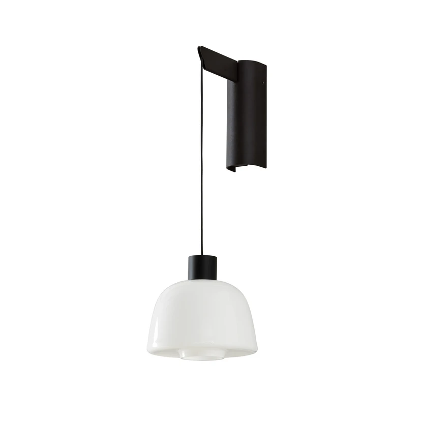 LED-vägglampa Drep A/01 med hängande, opalvit glasskärm