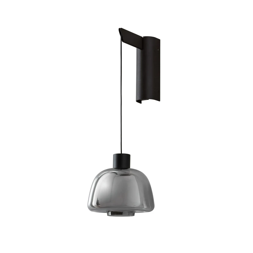 LED-vägglampa Drep A/01 med hängande, rökgråtonad glasskärm