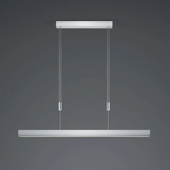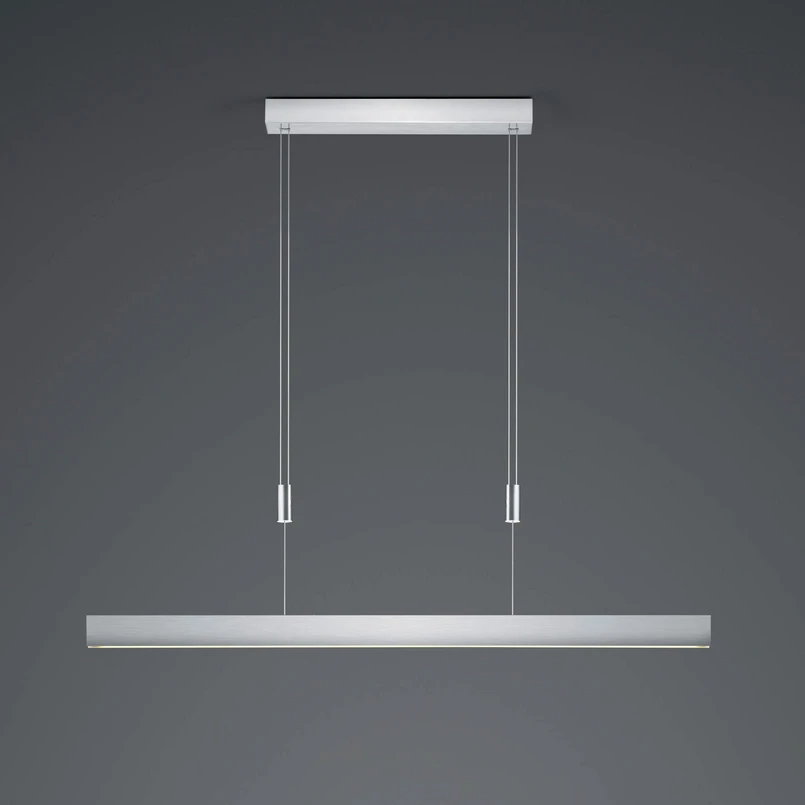 Dimbar LED-pendelarmatur Delta i utsökt hölje av rostfritt stål Delta är en pendelarmatur med chic och modern charm. Höljet har en rektangulär design. De lysdioder som är monterade inuti det avger ett behagligt, varmvitt ljus, vilket resulterar i en mysig och behaglig atmosfär. Därför är Delta pendelarmatur med sitt varma sken den idealiska ljuskällan för varje vardagsrum och matplats med ett sofistikerat boendekoncept. Tack vare de dimbara lysdioderna kan armaturens ljusstyrka också varieras efter önskemål med hjälp av en extern väggdimmer, så att man kan hitta rätt belysning för varje vardagssituation.