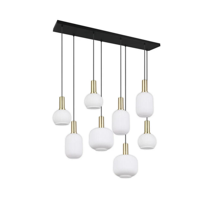 Diva hänglampa, 8 lampor, mässingsfärgad, opal, metall, glas