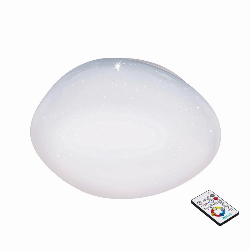 Med kristalleffekt - Sileras-Z LED-taklampa, appstyrd, RGBW Den vita Sileras-Z LED-taklampan är utrustad med en plastdiffusor med kristalleffekt. Inuti sitter smarta styrbara LED-lampor som är dimbara och kan styras med en app, röstassistent eller lämplig fjärrkontroll. Förutom färgat ljus kan man välja vita toner mellan varmvitt och dagsljusvitt och även skapa individuella ljusscenarier. Sileras-Z LED-taklampan kan också programmeras för en viss tid, till exempel för att planera en närvarosimulering för semestern eller för att använda lampan som en lätt väckarklocka. Funktioner / kompatibilitet: - styrbar med den kostnadsfria AwoX HomeControl-appen - kompatibel med smarta hemsystem från andra tillverkare som använder ZigBee 3.0 - direkt anslutning till Amazon Echo och Google Home möjlig - ökad räckvidd tack vare extra Bluetooth mesh - kompatibel med alla artiklar i EGLO connect-c Bluetooth-serien - styrbar med en lämplig fjärrkontroll även utan internetåtkomst (se tillbehör)