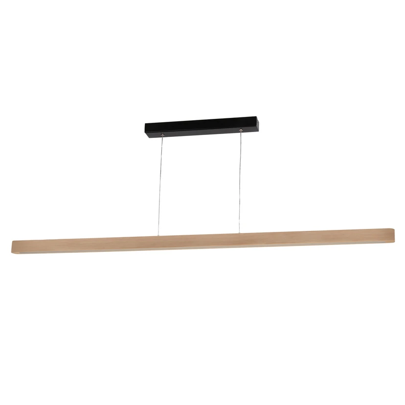 Smal LED-pendelarmatur Lineo av oljad ek - skiner under och över Till exempel placerad ovanför ett bord i vardagsrummet eller matsalen ger LED-pendeln Lineo varmvitt, direkt ljus och indirekt stämningsbelysning via taket. Den moderna designen hos den smala, långa stommen och den rektangulära baldakinen av svartlackerad metall kombineras skickligt med den naturliga utstrålningen från den ljusa, oljade eken som används för stommen. Märket Envostar fäster särskild vikt vid hållbarhetsaspekten. Produktionen i Europa åtföljs av reducerade transportvägar och förpackningen är tillverkad uteslutande av återvinningsbara material - utrustad med touch dimmer
