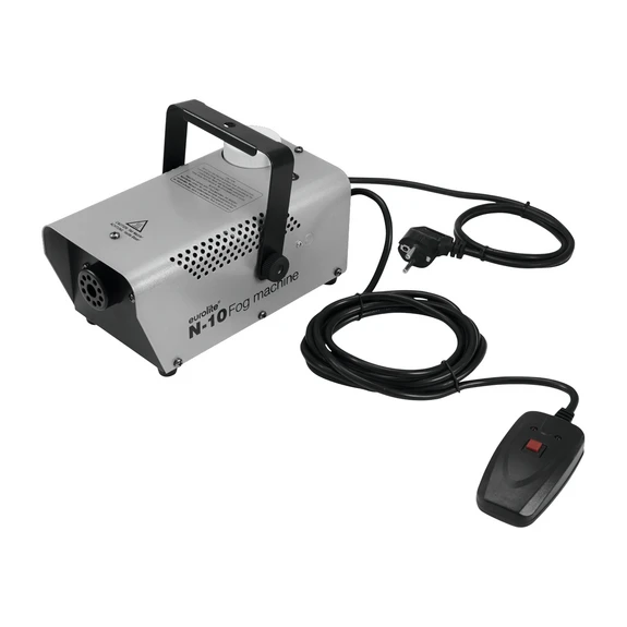 EUROLITE N-10 dimmaskin med fjärrkontroll N-10 dimmaskin är lämplig för små festlokaler. Den är kompakt, utrustad med en trådbunden fjärrkontroll med på/av-knapp, ett vridbart monteringsfäste, överhettningsskydd och en fyllnadsindikator - Räckvidd ca 2 m - Tankkapacitet 0,3 l - Uppvärmningstid ca 5 minuter - Vätskeförbrukning ca 12 ml/min.