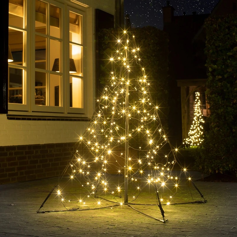 Fairybell® mastjulgran för stämningsfull utomhusdekoration Tack vare den enkla installationen utan extra verktyg eller fästmaterial kan Fairybell® LED-granen sättas upp som en festlig dekoration på nolltid. Fairybell®-designen är visuellt imponerande med sin bländande effekt som skapas av de många varmvita lysdioderna som hänger mellan trädets stag - med stolpe i rostfritt stål och baskors för uppställning på stenlagda ytor - inklusive matningskabel, transformator och extern kontakt - förlängningskabel och timer finns separat - se tillbehör