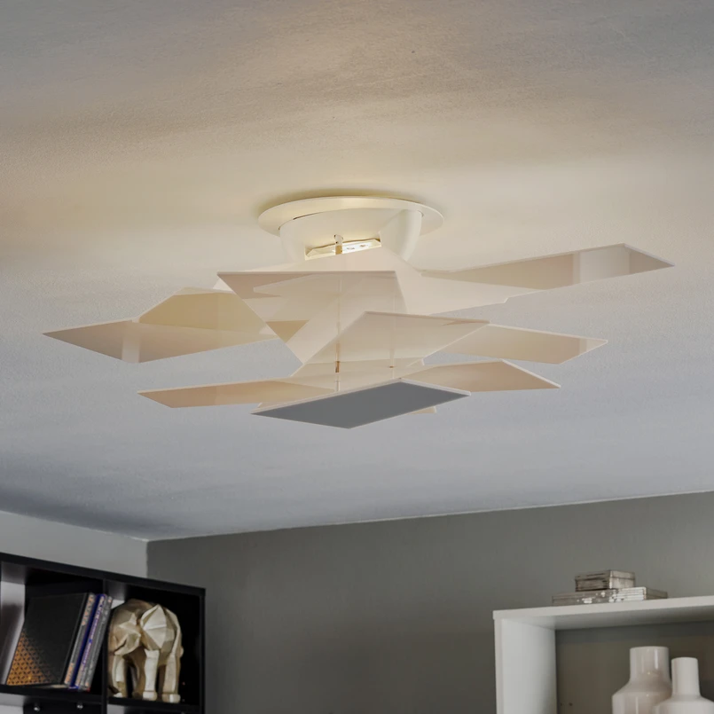 Ljuseffekten från taklampan Big Bang är helt indirekt. Metakrylplattorna placeras framför ljuskällan på ett sådant sätt att ljuset riktas direkt utåt, på ett sätt bländfritt genom plattorna och på ett annat sätt mjukt genom den ljusgenomsläppliga plasten. Den här designens uttrycksfulla karaktär passar bäst ihop med designorienterade inredningsstilar.