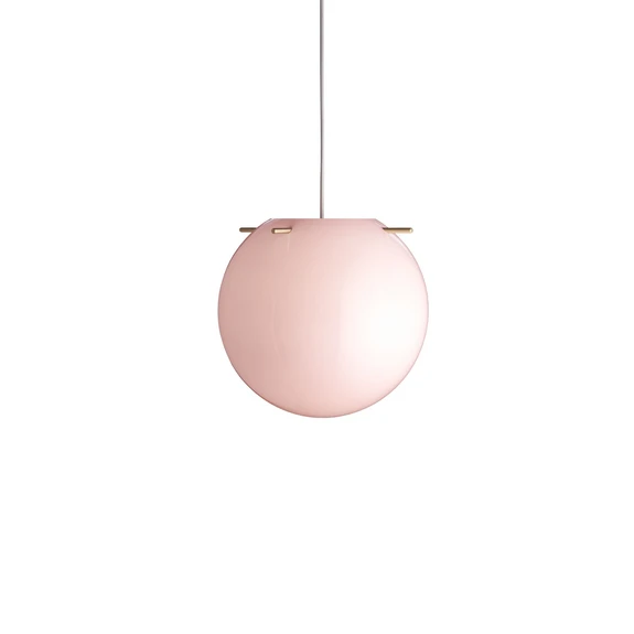 FRANDSEN pendellampa Koi, glas, ros/mässing, Ø 19 cm