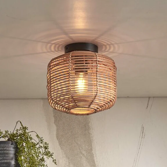 Liten taklampa Tanami av rotting i rund formTaklampan Tanami kan tack vare sina små dimensioner monteras flexibelt i vardagsrummet. Den är till exempel lämplig som ljuskälla i hallen, vardagsrummet, matplatsen eller sovrummet. Skärmen är tillverkad av rotting, takfästet är tillverkat av järn. Tillsammans ger materialen en modern och samtidigt naturlig helhetsbild, som förhöjer miljön. Om Good & Mojo:- hållbart, socialt varumärke - mycket av belysningen är handgjord av hantverkare i små samhällen i Vietnam - hållbara material tillverkade av växter som finns rikligt i Sydostasien - för varje såld lampa får WakaWaka Foundation en donation, och ett träd planteras också genom Eden Reforestation Projects