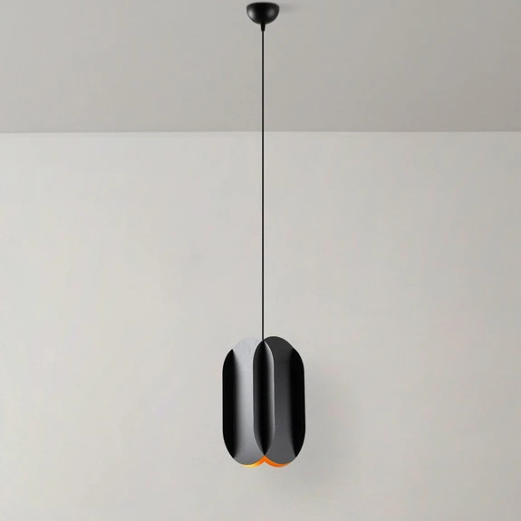 Hänglampan Corner kombinerar modern design med högkvalitativ finish och blir ett blickfång i varje rum. Den avlånga skärmen består av fyra ovala metallplattor. Den gyllene insidan ger ännu mer behaglighet åt det utstrålande ljuset. Tack vare sin moderna och samtidigt tidlösa estetik passar hänglampan Corner in i många inredningsstilar i matsalen, vardagsrummet eller köket, där den kan monteras enskilt eller i grupp för att belysa bord och bardiskar. Lampan är tillverkad i Europa och står för kvalitet och hållbarhet.