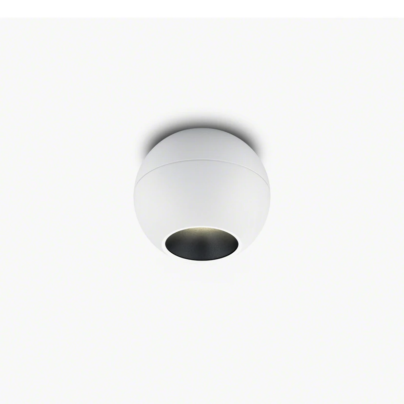 Rund Eto utanpåliggande LED-strålkastare för direkt inomhusbelysning Eto LED-takspot av aluminium är nästan sfärisk till formen. LED-ljuskällan är infälld i huset och ger ett varmvitt ljus med god färgåtergivning (CRI 90) som avges direkt nedåt. Taklampan är idealisk för områden med modern inredning, i privata vardagsrum samt i hotell och affärslokaler - Externt dimbar via fasreglering för framkant / bakkant