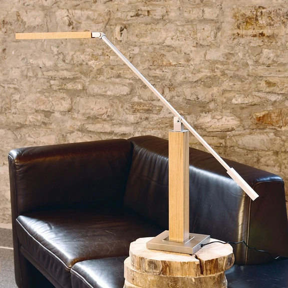 Ledad LED-bordslampa Otto O med touchdimmer Vare sig som skrivbordslampa i arbetsrummet eller som läslampa i vardagsrummet, Otto O är inte bunden till en specifik plats. Allt den flexibla ljuskällan behöver är ett uttag och den är redo att användas. Otto O kan justeras i både höjd och lutningsvinkel med hjälp av lederna. Tack vare intelligent dim-to-warm-teknik kan ljusstyrkan och färgtemperaturen justeras steglöst inom intervallet 2 200-4 000 Kelvin med en touchdimmer på armaturen. På så sätt kan du spontant välja mellan starkt arbetsljus och mysig feelgood-belysning. Med ett färgåtergivningsindex på över 90 ger den inbyggda ljuskällan dessutom en mycket realistisk färgåtergivning av belysta föremål. Tillverkaren HerzBlut är känd för sin höga kvalitet på sina lampor och sina eleganta kombinationer av massivt trä och metall.