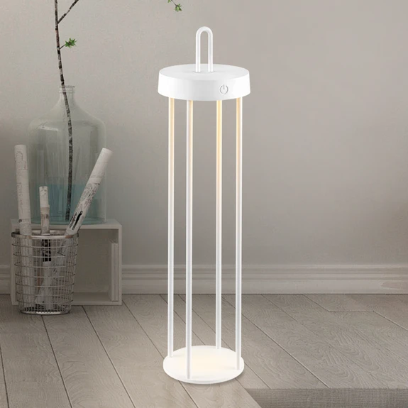Mobil lykta - Anselm LED-bordslampa för inomhus- och utomhusbruk Formen på Anselm LED-bordslampa är en modern tolkning av lyktan. Handtaget på ovansidan inbjuder till att ständigt flytta bordslampan, och ett uppladdningsbart batteri är integrerat för drift utan externa strömkällor. LED-modulen är integrerad i undersidan av det runda huvudet och avger ett mjukt ljus nedåt. Oavsett om det är i vardagsrummet, på uteplatsen eller i trädgården - Anselm ger en behaglig stämningsbelysning. Den kopplas in och touchdimmer med knappen på sidan av huvudet - Kapslingsklass: IP44 - Laddningstid: 4 h - Brinntid vid hög ljusstyrka: 7 h