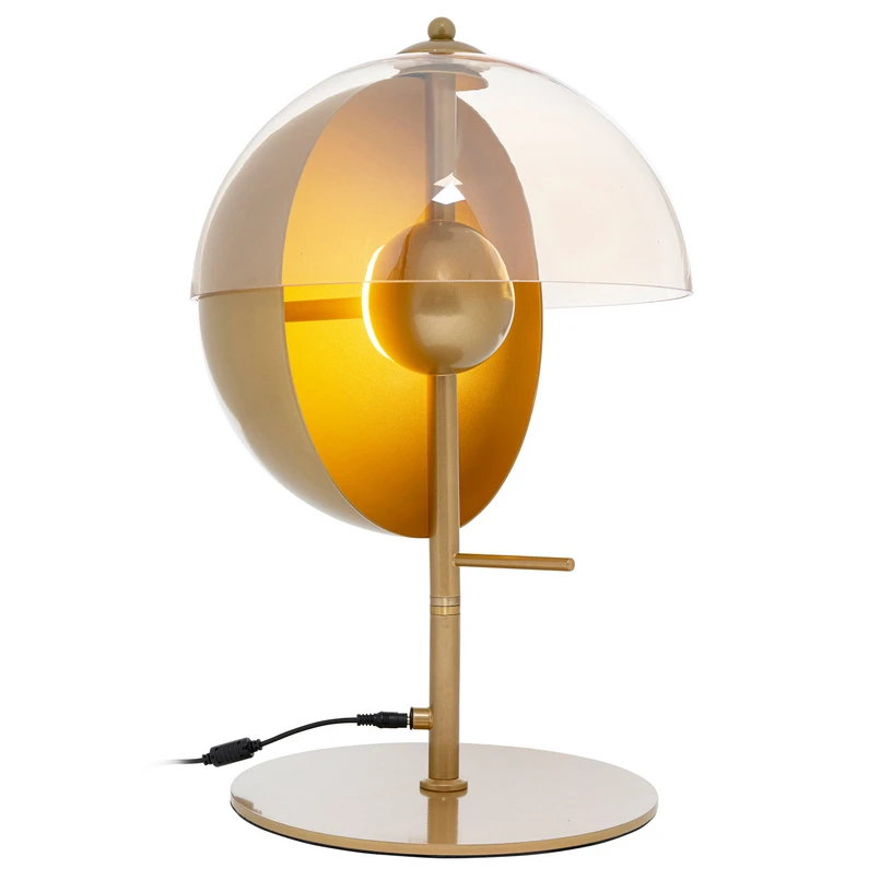 Romy LED-bordslampa av pulverlackerat stål och glas Bordslampan Romy är fascinerande och mångsidig. Basen med ram och den halvklotformade, stående skärmen är tillverkade av pulverlackerad metall, medan den halvklotformade skärmen ovanför är tillverkad av klart, galvaniserat glas. En speciell egenskap hos bordslampan är det roterbara ljuselementet. Beroende på rotationen kan armaturens ljusstråle varieras efter behov, så att både helt indirekt och direkt ljus kan ställas in.