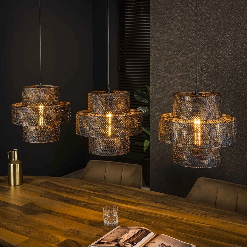 Lantern hänglampa svart/bränd längd 135cm metall 3 lampor