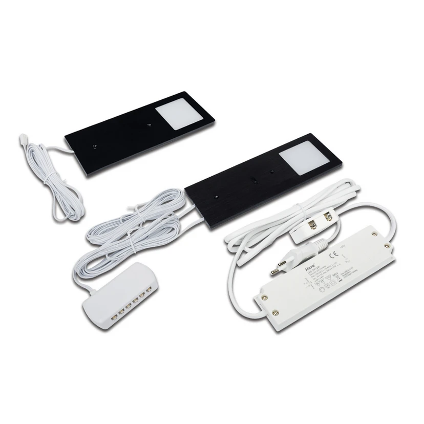 - Inklusive 230 V till 24 V LED-omvandlare, stickkabel, fördelare, anslutningskabel och monteringsskruvar.