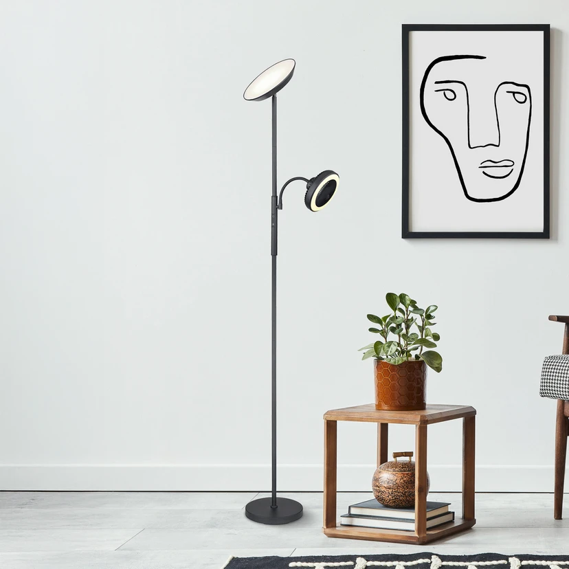 LED-golvlampa Davyd med LED-läslampa och fläktfunktion