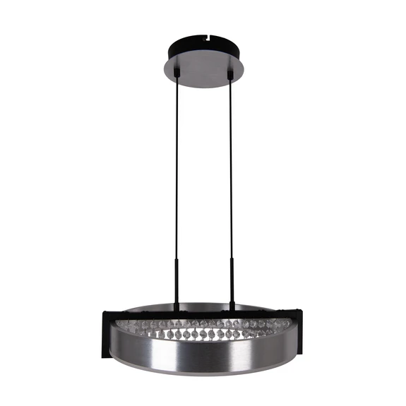 LED-hänglampan Yvaris kombinerar modern design med funktionell mångsidighet. Den är tillverkad av en högkvalitativ materialkombination av järn, aluminium och plast och passar perfekt in i moderna bostadsmiljöer. Den silverfärgade ytan och de kristalliknande elementen i den svarta ramen mitt på skärmen understryker lampans eleganta karaktär, medan den integrerade LED-tekniken ger en energieffektiv belysning.