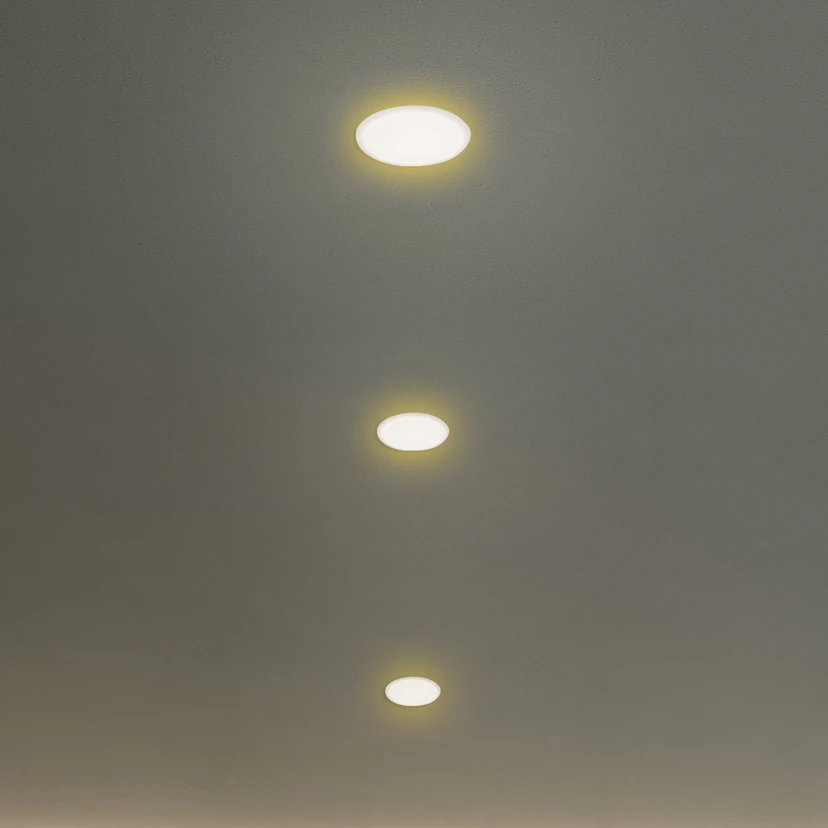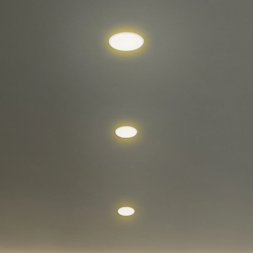 Plat LED-takinbyggnadslampa i elegant vitt Plat LED-inbyggnadslampan imponerar med sin tidlösa design, som gör att den kan kombineras med en mängd olika inrednings- och bostadsstilar. Armaturhuset är tillverkat av vit plast och avger ett bländfritt ljus till rummet. Denna ljuskälla kan användas för ett brett spektrum av applikationer. Tack vare kapslingsklassen IP44 är den skyddad mot vattenstänk och kan därför enkelt installeras i badrum och andra fuktiga rum.