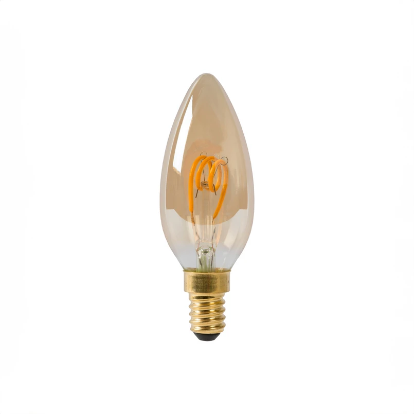 Dekorativ 3 W LED-kronljuslampa Denna LED-lampa är det perfekta valet om du vill skapa en varm och stämningsfull atmosfär i kombination med öppna armaturer. Detta garanteras av det böjda glödtrådsutseendet, ljusformen, det bärnstensfärgade tonade glaset och det särskilt varma ljuset på 2 200 Kelvin. Lampan är dessutom dimbar. Tekniska data - Energiklass: A - Jämförelsevärde: 15 W - Dimbar Särskilda egenskaper - Mycket varm strålning, dekorativ funktion