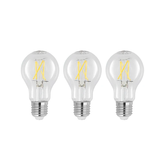 LED-lampa E27 4 W, varmvit (2 700 K), dimbar, glödtrådsutseende i praktisk uppsättning om 3Den här LED-lampan ger 360° belysning med varmvitt ljus. Den har låg förbrukning och ljusstyrkan kan justeras med en vanlig väggdimmer.- Dimbar med fasstyrd och fasavskiljande dimmer- Levereras i en uppsättning om 3