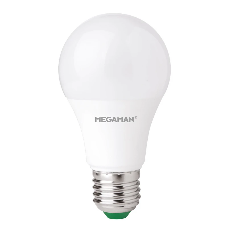 E27 A60 LED-lampa 9W, varmvit 2.800 K, dimbar Denna LED-lampa med frostat glas och kylfläns är idealisk som ersättning för en 60W traditionell glödlampa i befintliga armaturer. Den kan dimmas från 100 % till 20 % med en framkantsdimmer eller en bakkantsdimmer. Tekniska data/egenskaper: - 330° spridningsvinkel - mycket bra motstånd mot omkoppling med upp till 1 000 000 omkopplingar - lämplig för användning med rörelsevakter