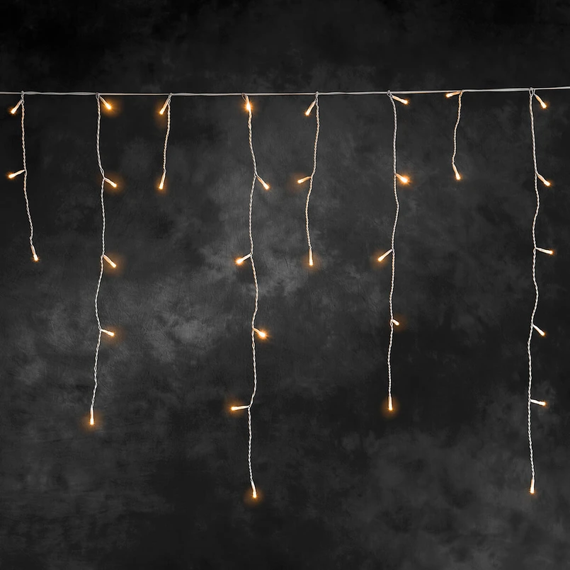 Vacker juldekoration för husfasaden: LED-lampor Isregn Längden på LED-lamporna Isregn varierar från 15 cm till 75 cm. I kedjan sitter totalt 200 LED-lampor som med sitt bärnstensfärgade ljus skapar en mycket festlig ljusatmosfär, så att både stora och små kommer i julstämning. En transformator för utomhusbruk ingår.