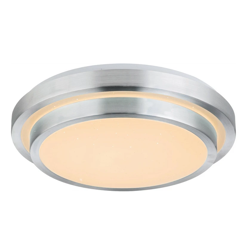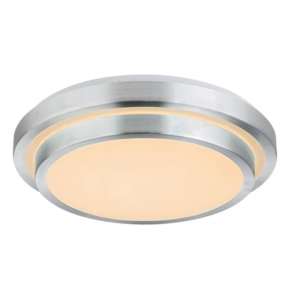 LED-taklampa Ina II med många funktioner, styrbar via fjärrkontroll LED-taklampan består av två runda plattor, den ena ovanför den andra, som är försedda med en aluminiumring. Den opala kupan har uppgraderats med en vacker gnistrande finish. Armaturen har ett modernt och enkelt utseende och kan därför enkelt integreras i många inredningsstilar och bostadsområden. Den passar t.ex. utmärkt som belysningselement i vardagsrummet, i hallen eller i sovrummet. Ina II styrs med den medföljande fjärrkontrollen. Med den kan man dimra armaturen och ändra ljusfärgen från varmvit till universalvit och dagsljusvit. Det är också möjligt att aktivera RGB-färgväxlaren, välja och fixera motsvarande färger. Lampan är också utrustad med en nattljusfunktion som gör det möjligt att orientera sig på natten. Minnesfunktionen kommer ihåg den senast valda inställningen när lampan tänds igen och kan aktiveras med fjärrkontrollen.