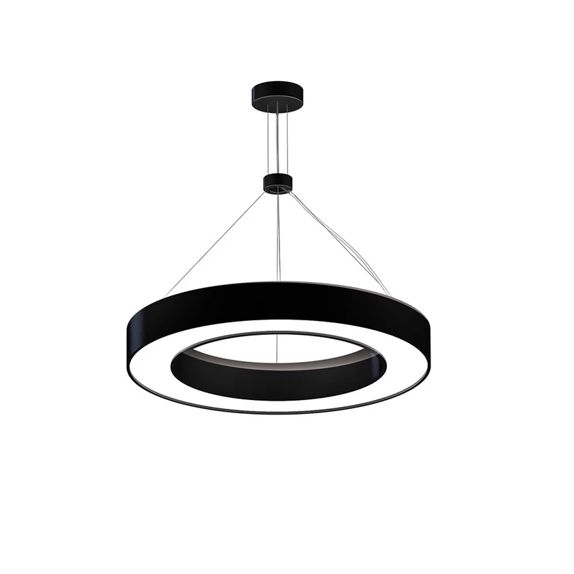 Lewori LED-pendellampa med aluminiumhus och vitt universalljus Dekorativ och elegant - det är Lewori LED-pendellampa. Höljet är tillverkat av aluminium, har en ringformad design och är sömlöst svetsat. På undersidan av lampskärmen sitter högeffektiva LED-kort med PMMA-lock som sprider ljuset nedåt. En LED-modul på ovansidan ger dessutom indirekt ljus uppåt. LED-lamporna kan vid behov dimras via en extern DALI-dimmer och ger ett vitt universalljus som lämpar sig utmärkt för koncentrerat arbete. Armaturen är därför idealisk för användning på kontor, där den ger generös belysning - Ljusutsläpp: direkt och indirekt - Dimbar - Universellt vitt ljus - Monteringsmaterial ingår - Färgåtergivningsindex (CRI): 90