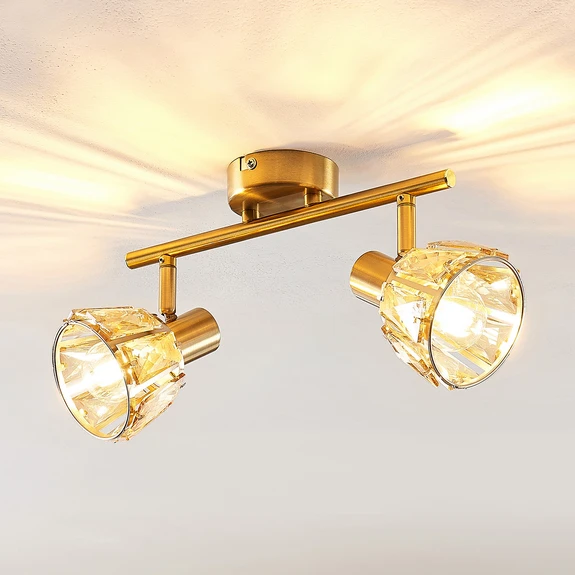 Lindby Kosta taklampa, 2 lampor, mässing