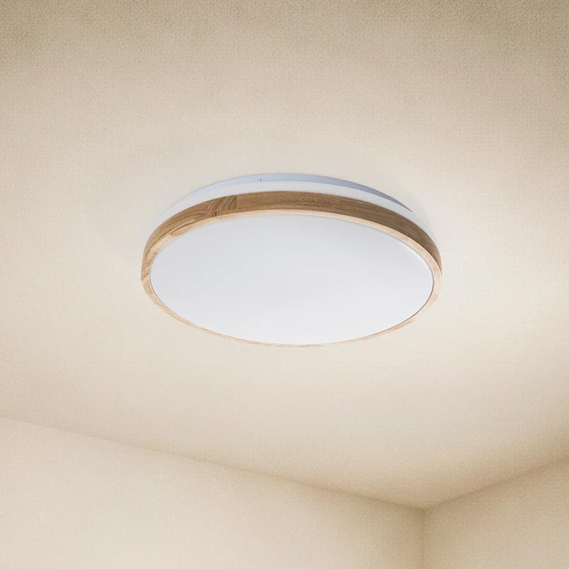 Oändligt dimbar Emiva LED-taklampa i trä med fjärrkontroll LED-taklampan Emiva imponerar med sin enkla design som passar bra in i moderna miljöer. Det runda, platta höljet är tillverkat av järn och gummiträ och är ett riktigt blickfång i taket. Lysdioderna är permanent installerade i armaturen och är ekonomiska när det gäller strömförbrukning. Plastbländskyddet gör att ljuset kan spridas jämnt och mjukt så att det fördelas jämnt i omgivningen. Tack vare den medföljande fjärrkontrollen kan både ljusstyrkan och färgtemperaturen varieras steglöst. Den integrerade timerfunktionen, som släcker ljuset efter 30 minuter, är särskilt praktisk på kvällen.