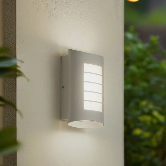 Vit LED-utomhusvägglampa Ismael i kantig design i slät vit LED-utomhusvägglampan Ismael i matt vit kombinerar elegant design med modern LED-teknik. Den här lampan är inte bara ett blickfång för alla utomhusmiljöer, utan också en energieffektiv ljuskälla som förvandlar balkonger och uteplatser till inbjudande platser. Den integrerade LED-ljuskällan ger jämn och stark belysning, vilket gör utomhusområden säkra och trevliga. Med sin moderna stil smälter Ismael utomhusvägglampa med LED sömlöst in i modern arkitektur och skapar en atmosfär som är både lugnande och inspirerande.