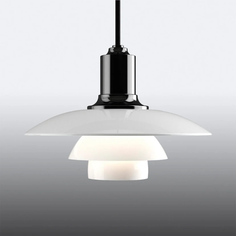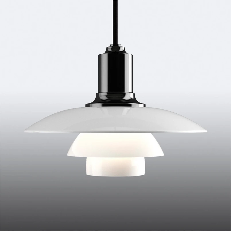 PH 2/1 pendellampa - en klassiker vars charm aldrig falnar Ljuseffekten hos PH 2/1 pendellampa med sin tredelade glasskärm är lika fantastisk som dess visuella intryck. Skärmarna är tillverkade av munblåst, opaliserat, treskiktat glas, skärmens insida är sandblästrad matt, vilket skapar ett mjukt, diffust ljus, medan utsidan lyser. Designen av PH 2/1 pendellampa går tillbaka till en design av den välkända danska designern Poul Henningsen från 1925/26. Henningsen var inte bara en armaturdesigner, han arbetade också som arkitekt, författare och journalist. Hans huvudintresse var dock ljus och hur det bäst kunde återges. Han gjorde banbrytande arbete om förhållandet mellan ljusstrukturer, skuggor, reflektion och ljusåtergivning. Hans samarbete med företaget Louis Poulsen varade fram till hans död 1967. En fantastisk ljuskälla som inte bara avger bländfritt och mysigt ljus, utan också har en mycket dekorativ effekt och kan kombineras med många livsstilar tack vare sin attraktiva tidlöshet.