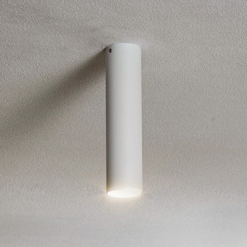 Cylindrisk Takio downlight i stål Takio downlight kan verka enkel och oansenlig, men den skapar en accentbelysning som kan användas för att framhäva alla detaljer i ett rum. Armaturen består av en stålcylinder som skjuter ut i rummet från taket. När en lämplig ljuskälla sätts in i GU10-uttaget inuti cylindern skapas en punktformad ljuskägla.