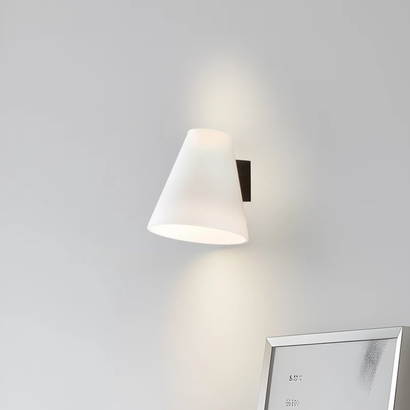 Med glasskärm - vägglampan Timido Med sin vita glasskärm skapar vägglampan Timido en mysig atmosfär i alla rum. Oavsett om det är i vardagsrummet, sovrummet eller hallen - det bländfria ljuset skapar en behaglig atmosfär. Den koniska skärmen är öppen upptill och nedtill, vilket skapar tilltalande ljuskoner. Ljusstyrkan hos en dimbar ljuskälla kan justeras med hjälp av en extern dimmer.