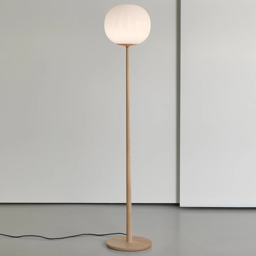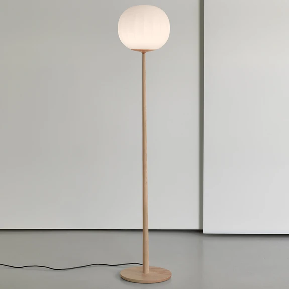 Lita golvlampa i trä med glasdiffusor och fotdimmer Golvlampan Lita skapar en mysig och inbjudande atmosfär med sin materialkombination av askträ och opalglas och färgkombinationen av en ljus träton och satinopalvit. Lita är en skapelse från Luceplan, designad av David Dolcini, en italiensk designer med internationell erfarenhet och egen designstudio. Lita utstrålar lugn och tidlöshet med sin enkelhet. Utformningen av den sfäriska glasskärmen och den linjära ramen med en rund bas är en garanti för en klassiker, långt borta från alla trender. Golvlampan har utrustats med en dimmer (fotdimmer på kabeln) för att bättre tillgodose individuella behov.