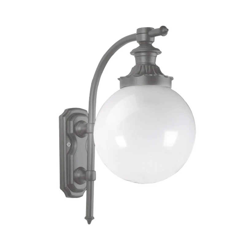 MADEIRA - vacker utomhusvägglampa i sfärisk form Utomhusvägglampan Madeira med sfär i akrylglas är baserad på en klassisk, elegant design. Armaturhållaren i pressgjuten aluminium är lackerad i en diskret brun nyans. Den vita akrylglasskärmen ger en ljus och bländfri belysning för utomhusmiljöer. Madeira passar utmärkt bredvid entrédörren och kan kombineras elegant med andra lampor i Madeira-serien.