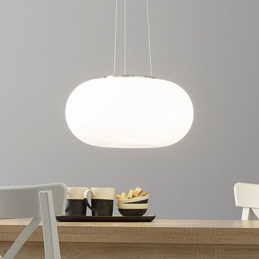Snygg Optica taklampa med rund glasskärm Med sin smakfulla, enkla design passar Optica taklampa till moderna inredningsstilar och ger en elegant accent till alla rum. Den rundade vita glasskärmen ger en jämn och behaglig belysning av användningsområdet. Ramen har en matt nickelfinish och kompletterar taklampans moderna, eleganta utseende.