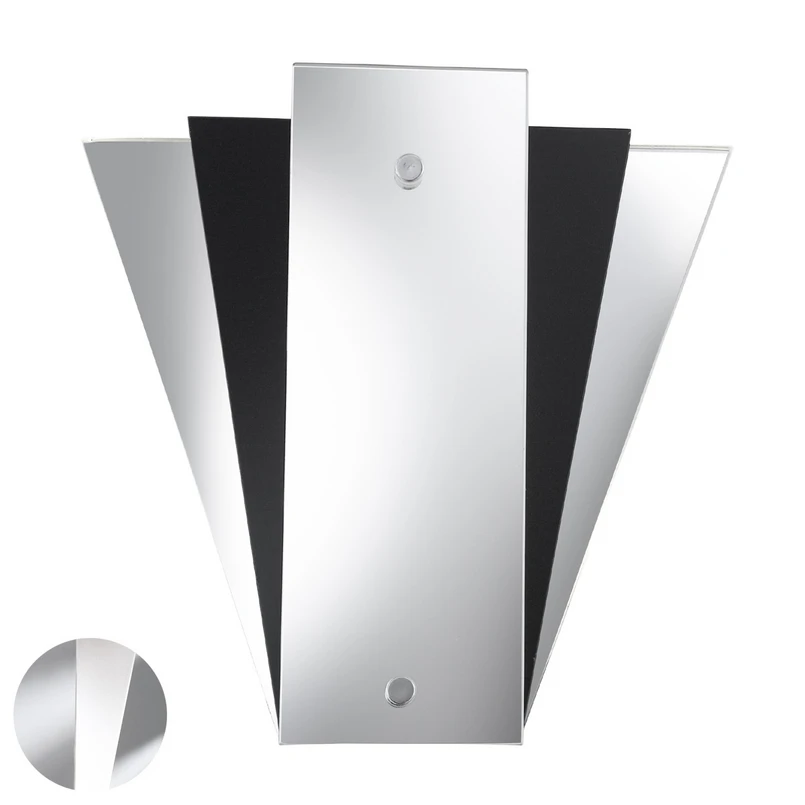 LEWIS vägglampa med spegelglas ger behagligt ljus Den kantiga designen hos LEWIS vägglampa är det perfekta komplementet till moderna inredningsstilar. Det använda spegelglaset gör den särskilt lämplig för badrummet eller hallen, dvs. precis där man vill ta en snabb titt på sin egen spegelbild och där omgivningen ska framhävas med mjukt ljus. De färgade glasinsatserna i vägglampan skapar attraktiva accenter.