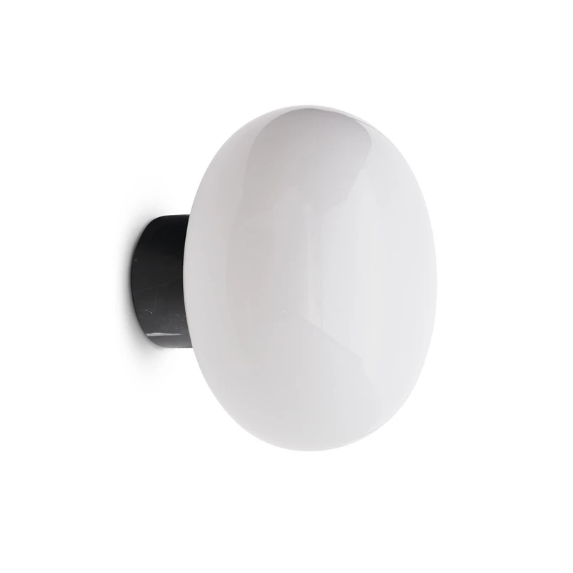 New Works vägglampa Karl-Johan, vit, marmor, glas, Ø 23 cm