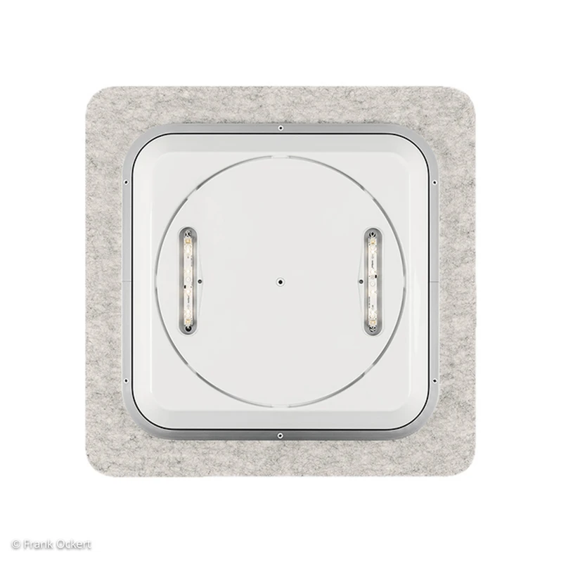Lighting Pad Q 600 LED akustikarmatur för indirekt och direkt belysning Den kraftfulla pendelarmaturen Lighting Pad Q 600 LED ger en omfattande belysning med en effektiv indirekt ljusandel. Premiumarmaturserien tillverkas i Tyskland och erbjuder olika egenskaper som är fördelaktiga i kommersiella och offentliga miljöer - som kontorsbyggnader, hotell, universitet etc. - den kvadratiska designen med rundade hörn ger armaturen ett modernt utseende. Material och konstruktion har valts så att Lighting Pad har en mycket effektiv, ljudabsorberande yta - Dimbar via DALI/switchDim (dimning via videokonferens) - Ljudabsorptionsklass B - Akustisk fleece: flamskyddad