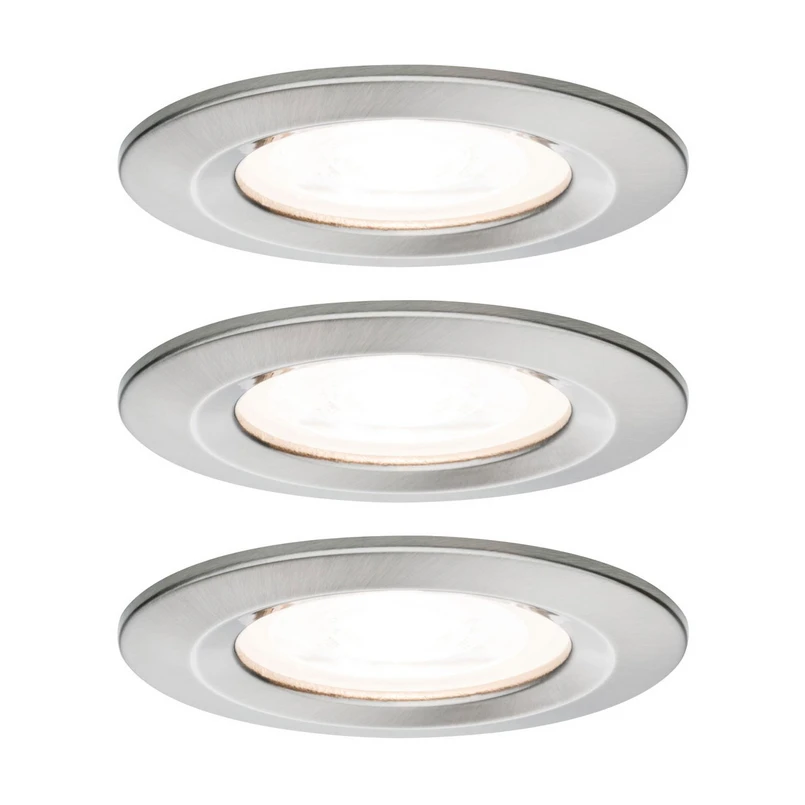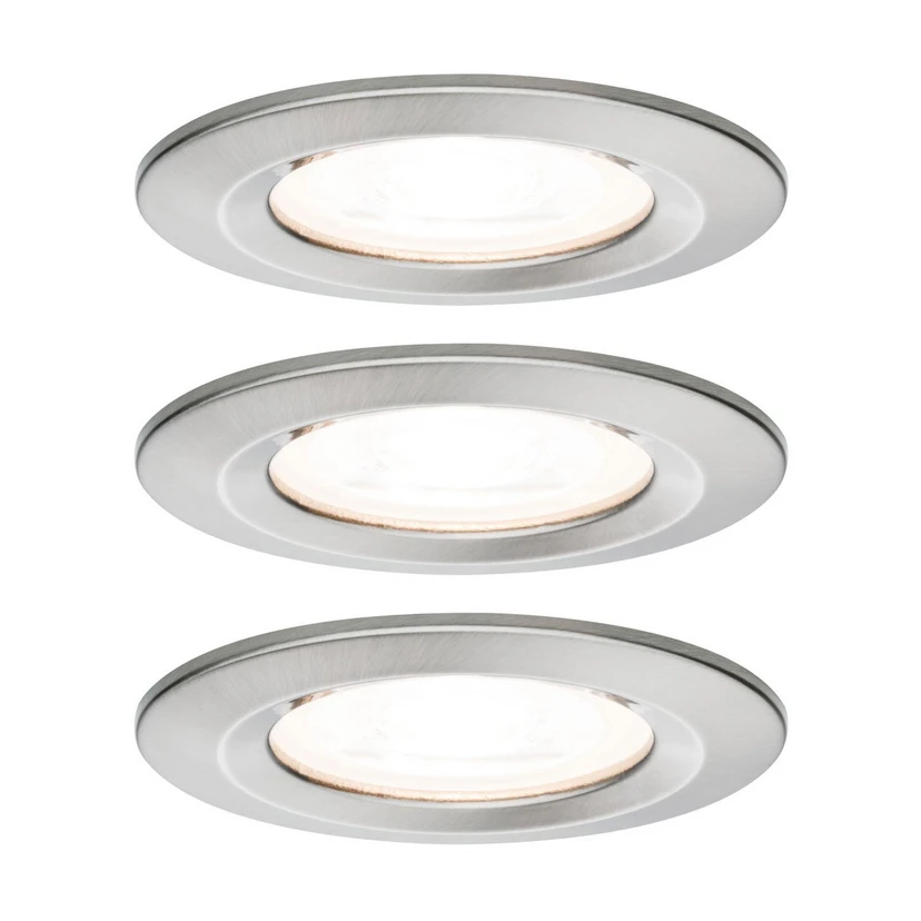 Nova LED-spotlight i 3-pack med IP44-skydd och 3-stegsdimmer Nova LED-spotlight i 3-pack gör det möjligt att skapa ett skräddarsytt belysningskoncept. De är lätta att montera i taket med hjälp av fjädrar och kan enkelt kopplas ihop på valfritt avstånd. LED-spottarna är tillverkade av aluminium och är runda. Den utbytbara LED-ljuskällan med GU10-sockel avger varmvitt ljus nedåt i rummet och kan dimras i tre steg med en vanlig ljusströmbrytare. Tack vare stänkskydd IP44 kan de användas i fuktiga utrymmen.