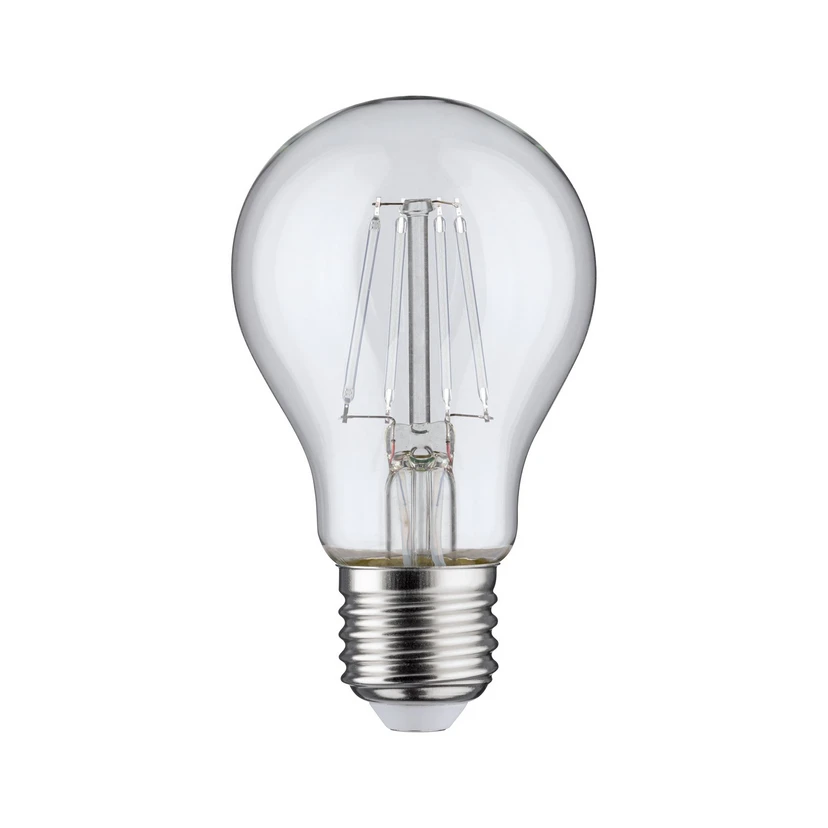 Denna E27-LED-lampa med färgade lysande LED-lampor i glödtrådsteknik ger ett mjukt färgat ljus, till exempel i en ljusslinga, men även i andra lampor som används för dekorativa ändamål. När lampan är släckt är den transparent.