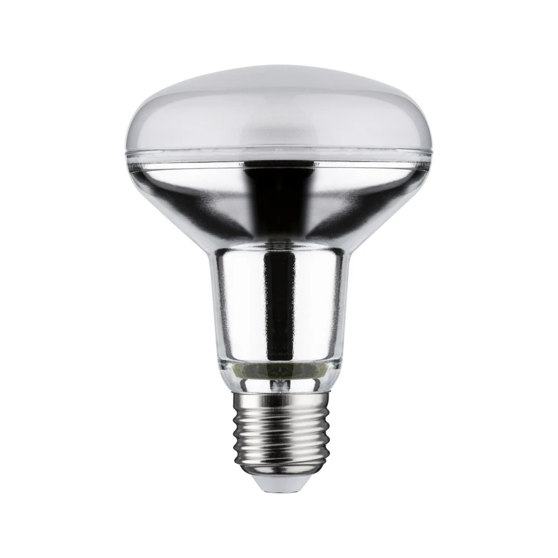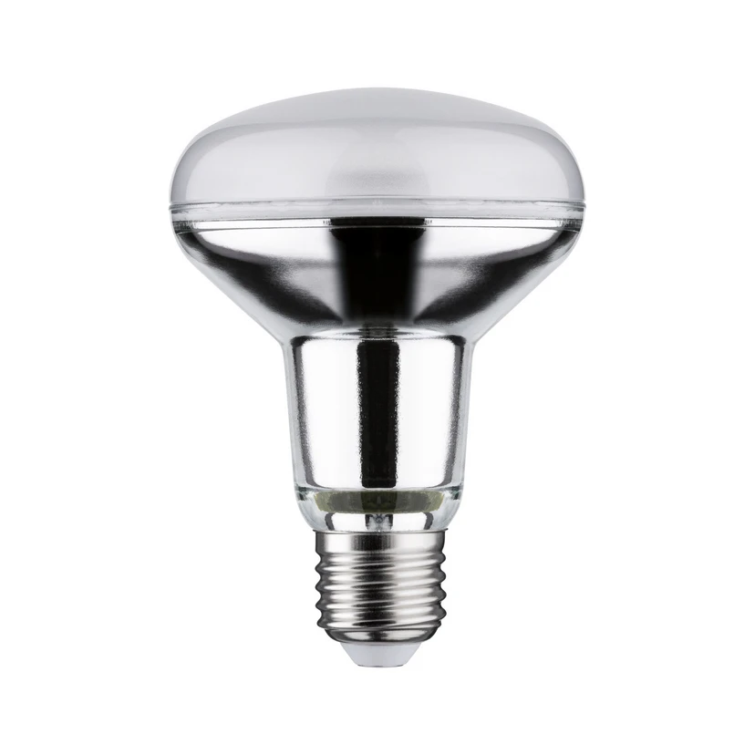 E27 6,5W LED-reflektor R80 från Paulmann med silverfärgat glashus, universalvittDen här icke-dimbara LED-reflektorlampan R80 med E27-sockel avger ett universellt vitt ljus med en spridningsvinkel på 36°. Lampan är särskilt lämplig för spotlights och strålkastare.